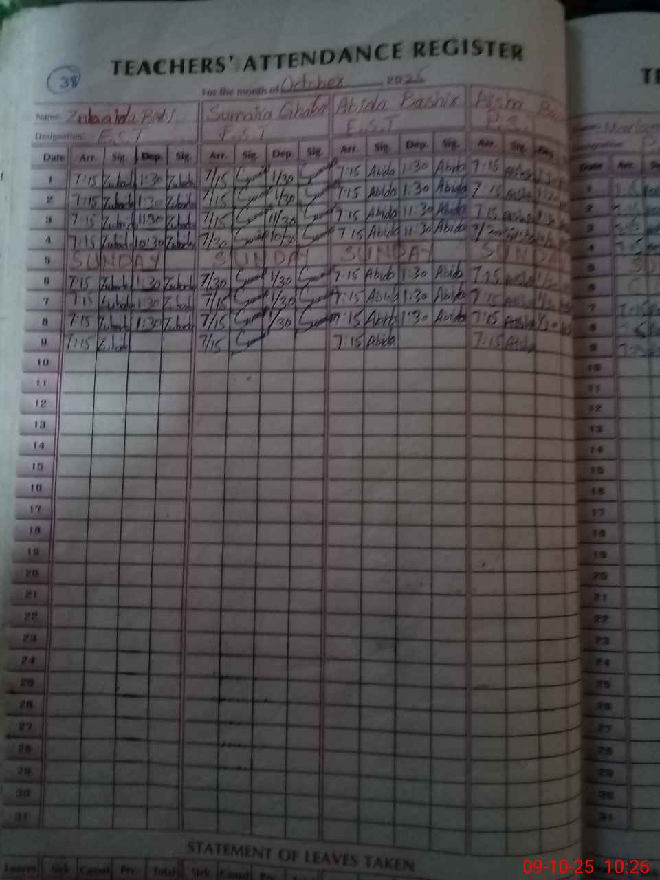 | Name: Zu**** Bi**** Designation: (School Headmaster's/Headmistress's) EST (GEN) Phone/Cell Number: 03**** |