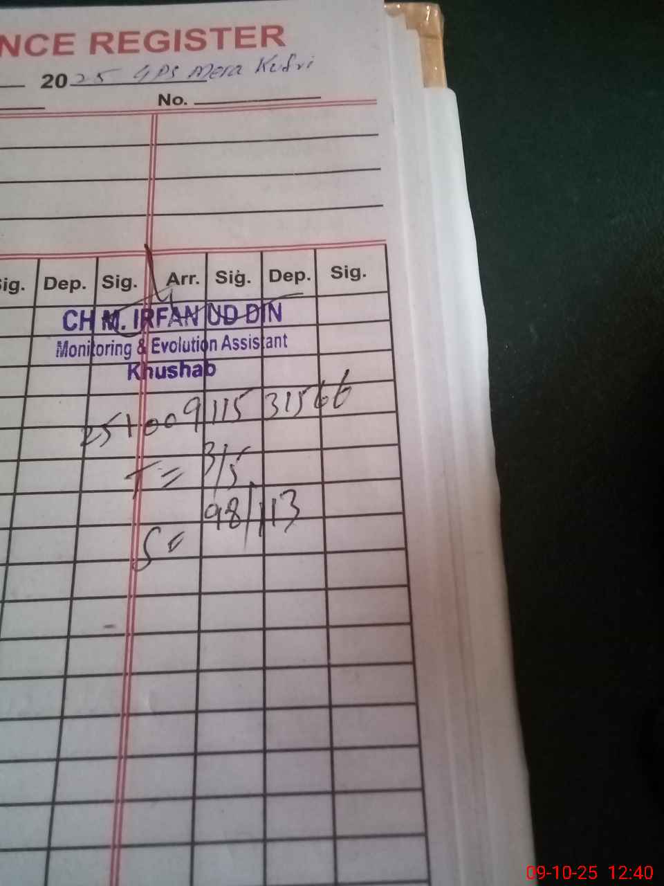 | Monitoring Date: 09-10-2025 | Start Time: 09-10-2025 11:52 AM | End Time: 09-10-2025 12:41 PM | Name of MEA: MU**** IR**** UDDI**** | |