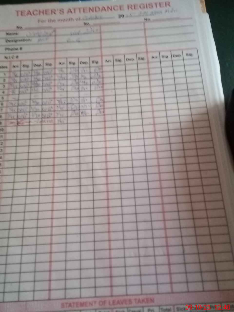 | Name: Mu**** Ar**** Designation: (School Headmaster's/Headmistress's) PST Phone/Cell Number: 03**** |