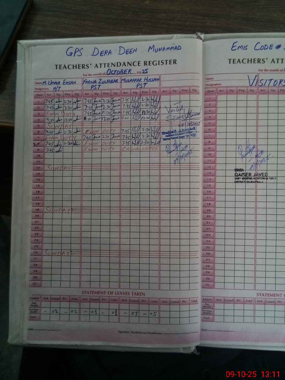 | Name: M.UM**** EH**** Designation: (School Headmaster's/Headmistress's) PST Phone/Cell Number: 03**** |