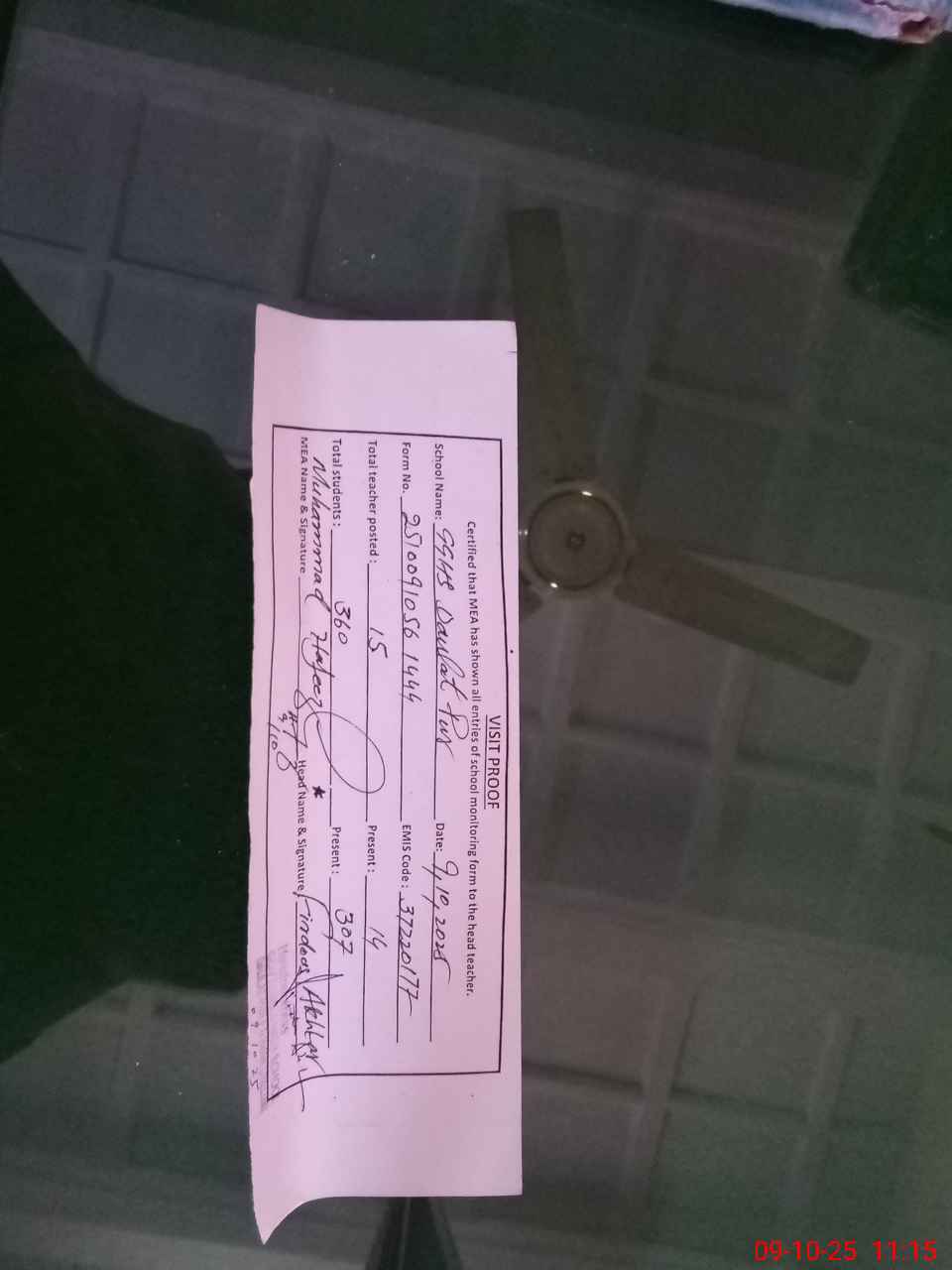 | Certified that this School was Inspected by the Undersigned MEA/DMO Today and the Information Stated Above is as Per Record. | |||||