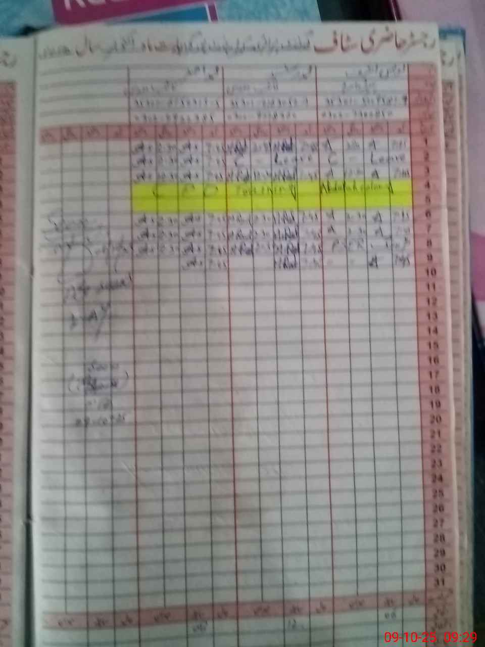 | CNIC | Full Name | Designation | R/C | Absence During Last Calender Month |