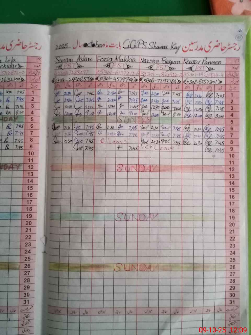| CNIC | Full Name | Designation | R/C | Absence During Last Calender Month |