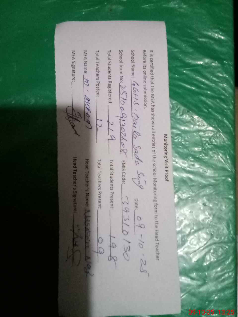 | EMIS Code: 39310130 | Name of School: GGHS SONDHA SINGH | |||
