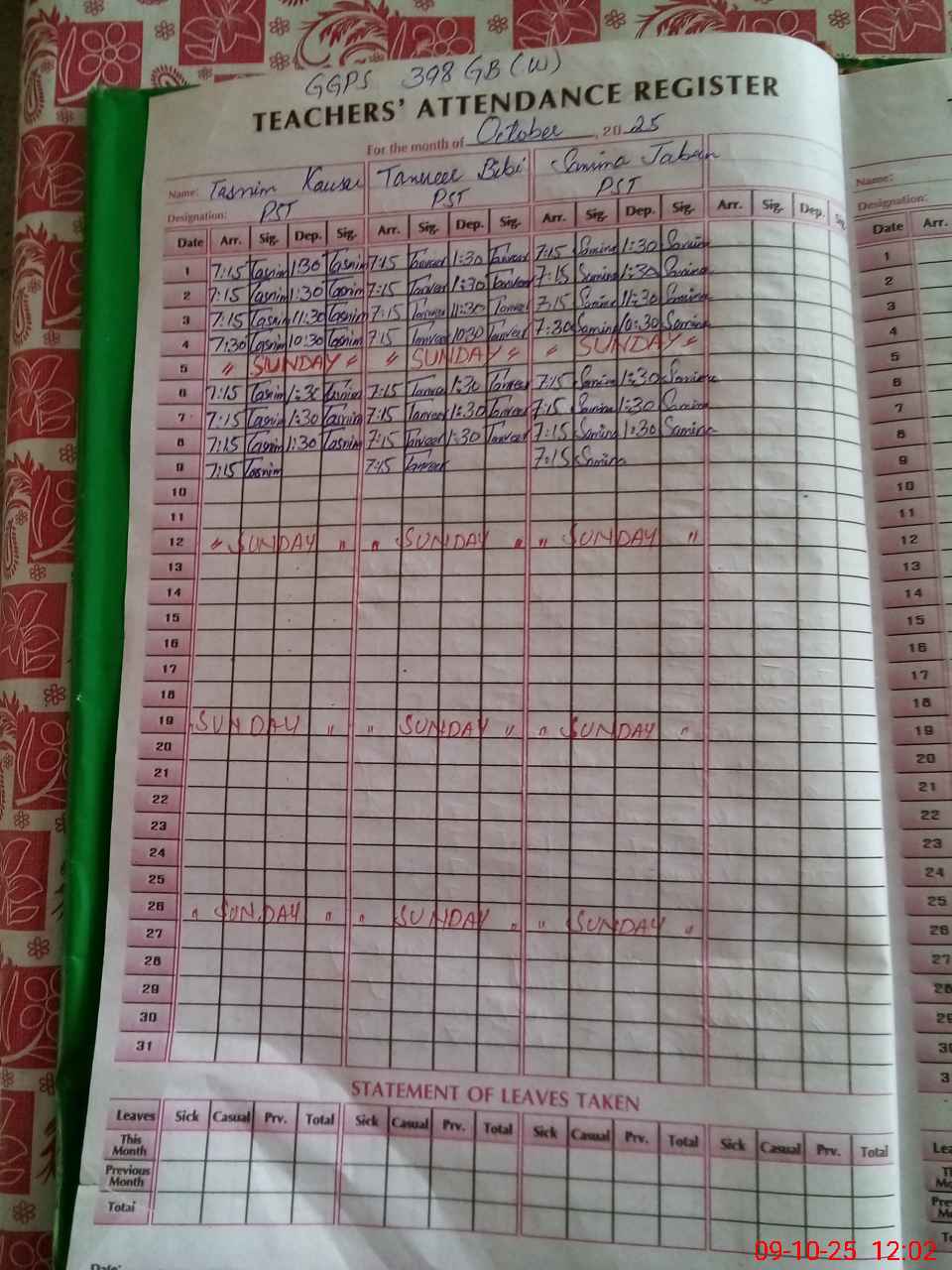 | Leave | Duty | Absent | Maternity | Medical | Ex- Pak |