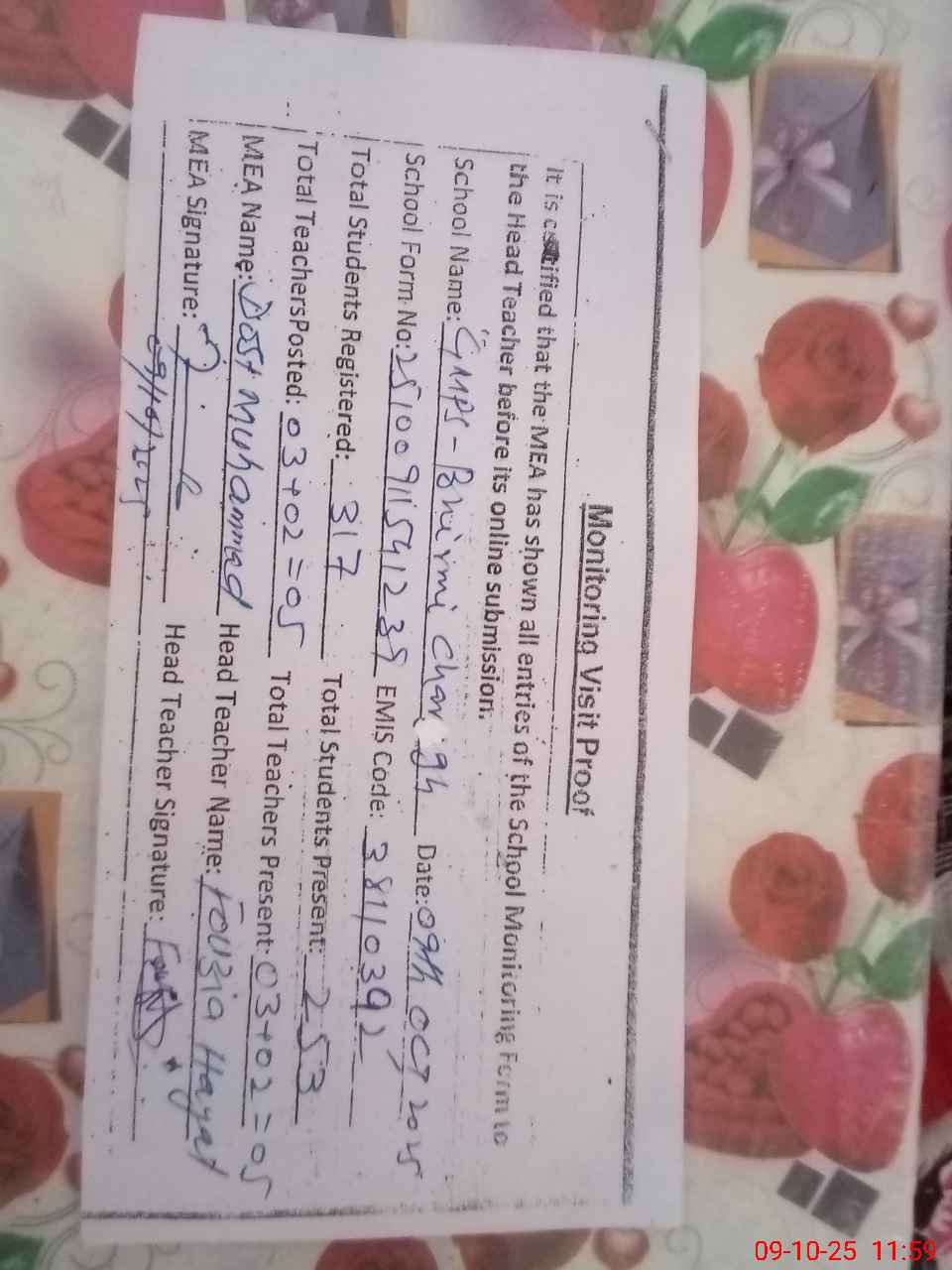 | EMIS Code: 38110392 | Name of School: GMPS MOEL BHARMI CHIRAGH SHAH | |||