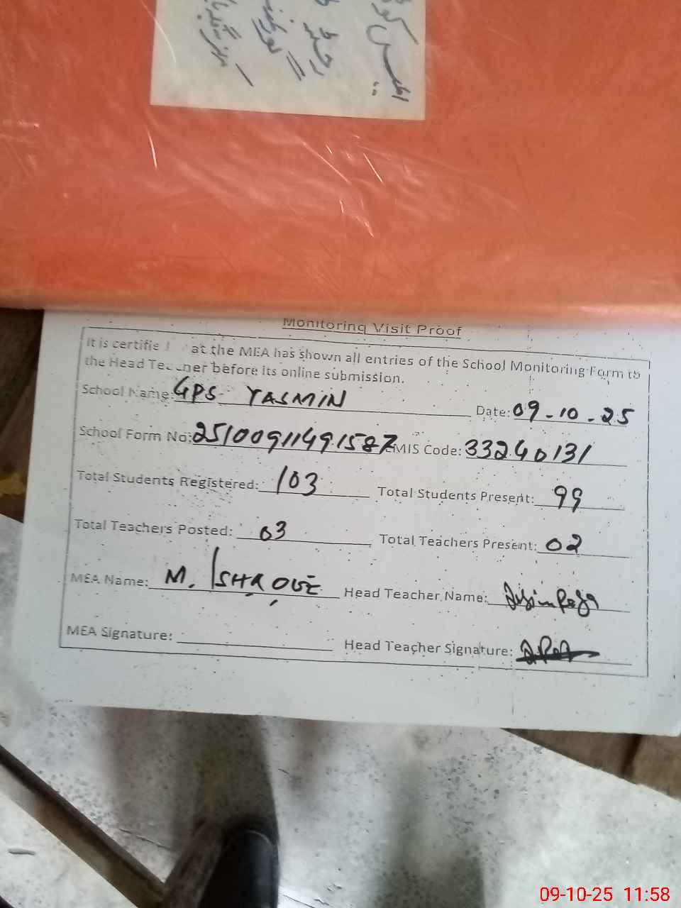 | EMIS Code: 33240131 | Name of School: GPS YASMIN | |||
