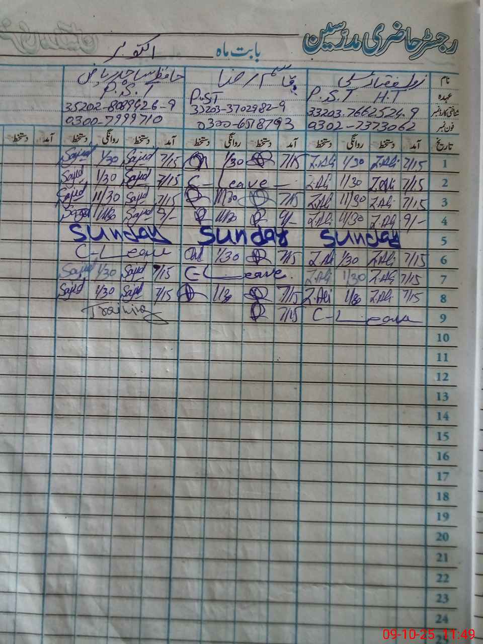 | Name: ZU**** AL**** Designation: (School Headmaster's/Headmistress's) PST Phone/Cell Number: 03**** |