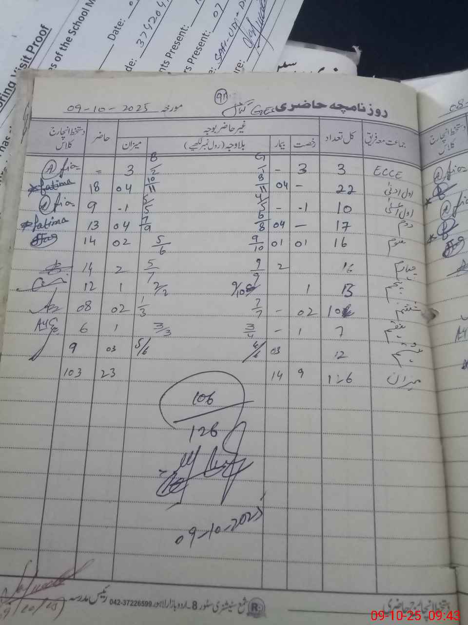 | Attendance Register | Head Teacher | MEA with School | Visit Proof |