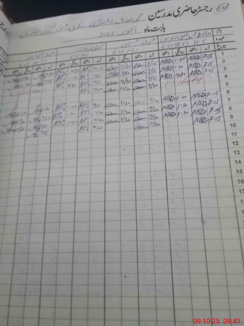 | Monitoring Date: 09-10-2025 | Start Time: 09-10-2025 08:17 AM | End Time: 09-10-2025 09:43 AM | Name of MEA: Ak**** Me**** | |