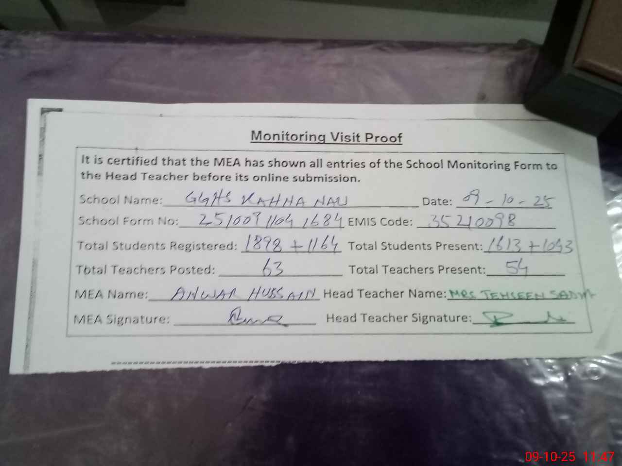 | EMIS Code: 35210098 | Name of School: GGHS KAHNA NAU | |||