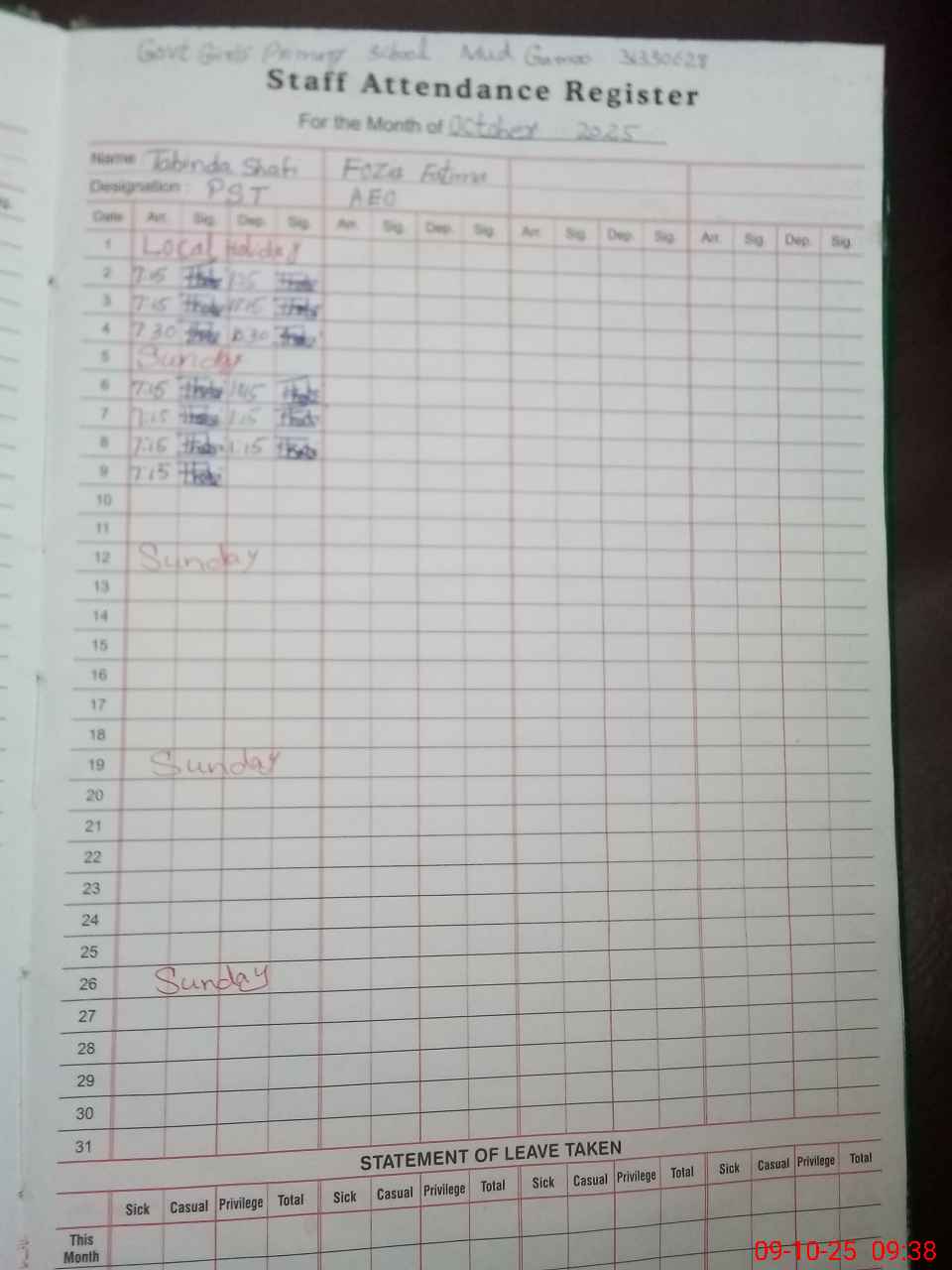 | Name: Ta**** Sh**** Designation: (School Headmaster's/Headmistress's) PST/PTC/JV Phone/Cell Number: 03**** |