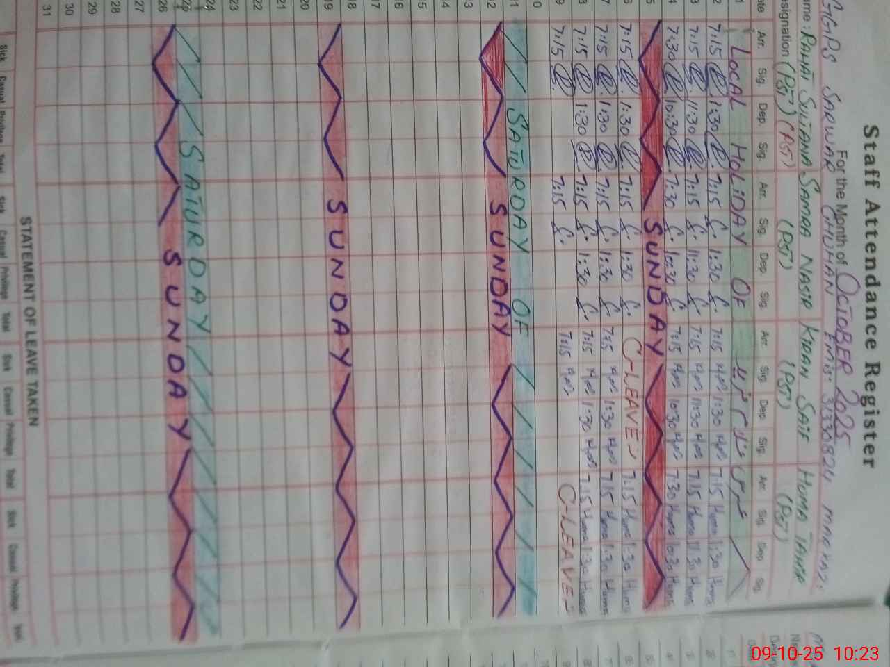 | 31**** | Ab**** Wa**** | CHOWKIDAR | Regular | 0 | 0 | 0 | 0 | 0 | 0 | 0 | 0 | 0 | Casual |
