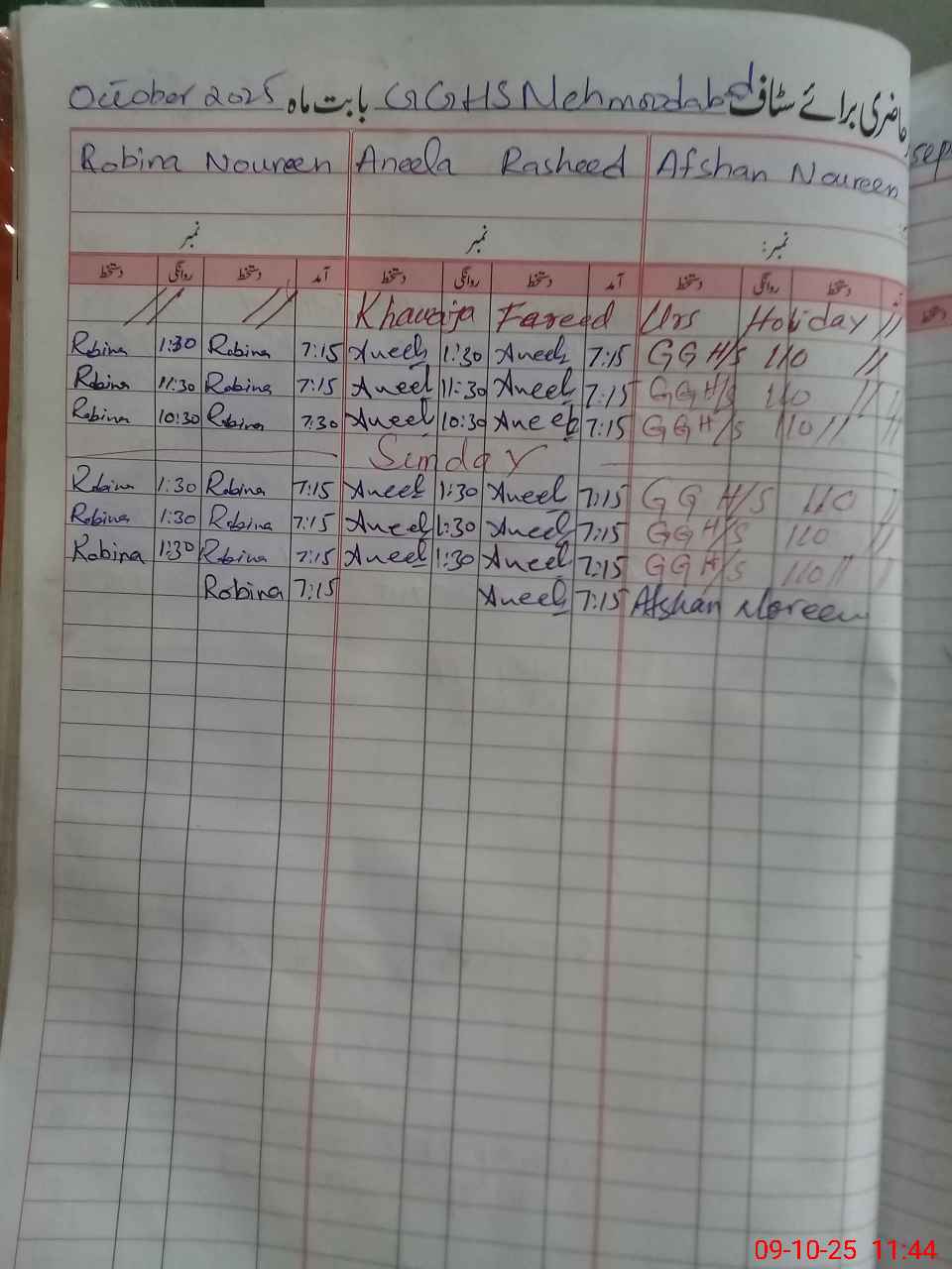 | CNIC | Full Name | Designation | R/C | Absence During Last Calender Month |