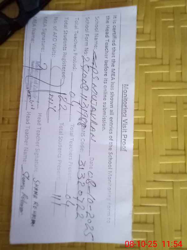 | Attendance Register | Head Teacher | MEA with School | Visit Proof |