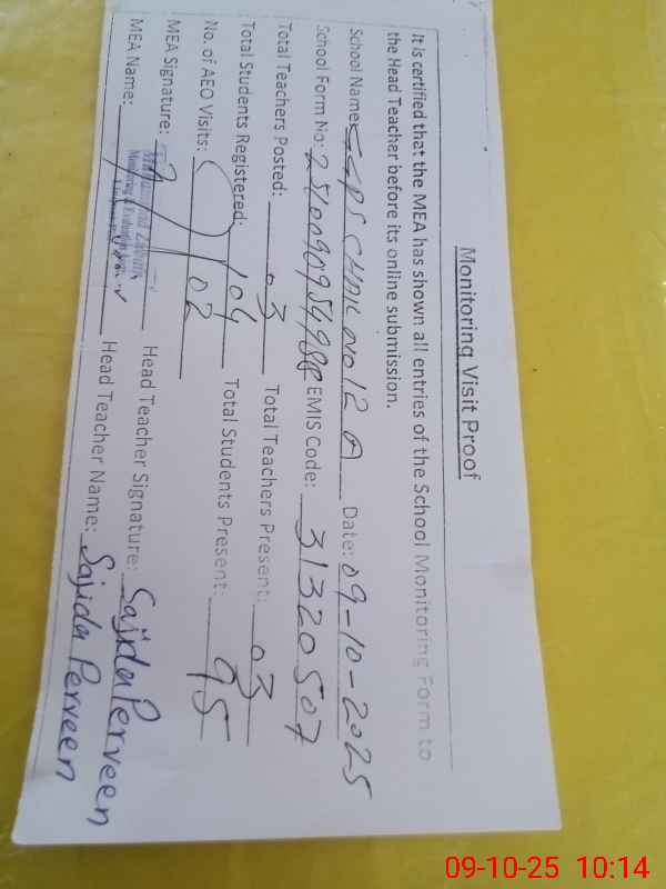 | EMIS Code: 31320507 | Name of School: GGPS CHAK NO.12/A | |||