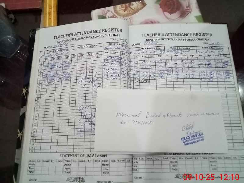 | Total no. of Classrooms: 5 No. of Classrooms Used for Teaching: 5 No. of Classrooms Storing Old Furniture, FTBs, etc: 0Comments if Any: MUHAMMAD BILAL IS ABSENT SINCE 01 01 2025 TO 09 IO 2025 |