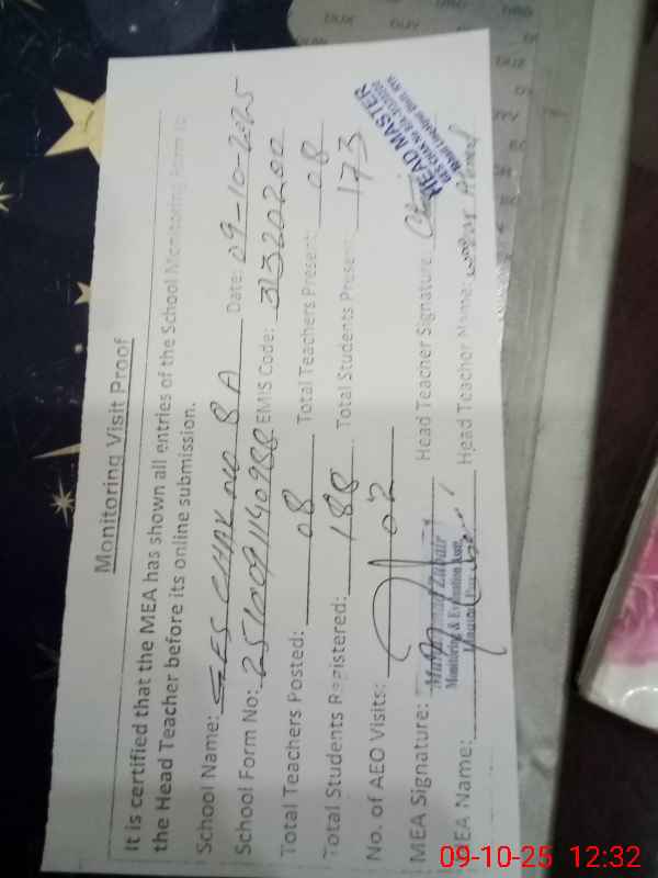 | Certified that this School was Inspected by the Undersigned MEA/DMO Today and the Information Stated Above is as Per Record. | |||||