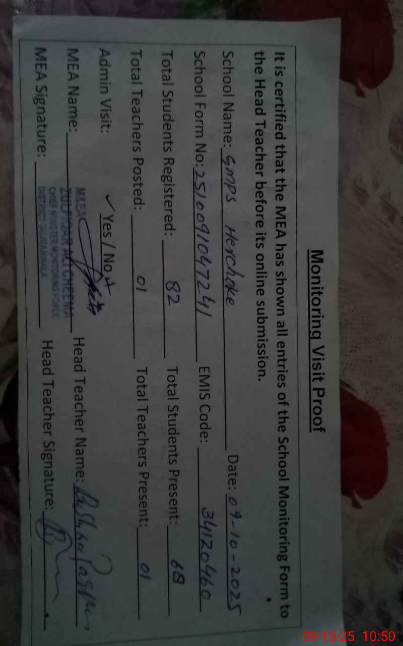 | EMIS Code: 34120460 | Name of School: GMPS HERCHOKE | |||