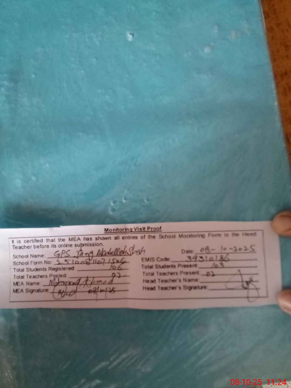 | EMIS Code: 39310186 | Name of School: GPS JHANG ABDULLAH SHAH | |||