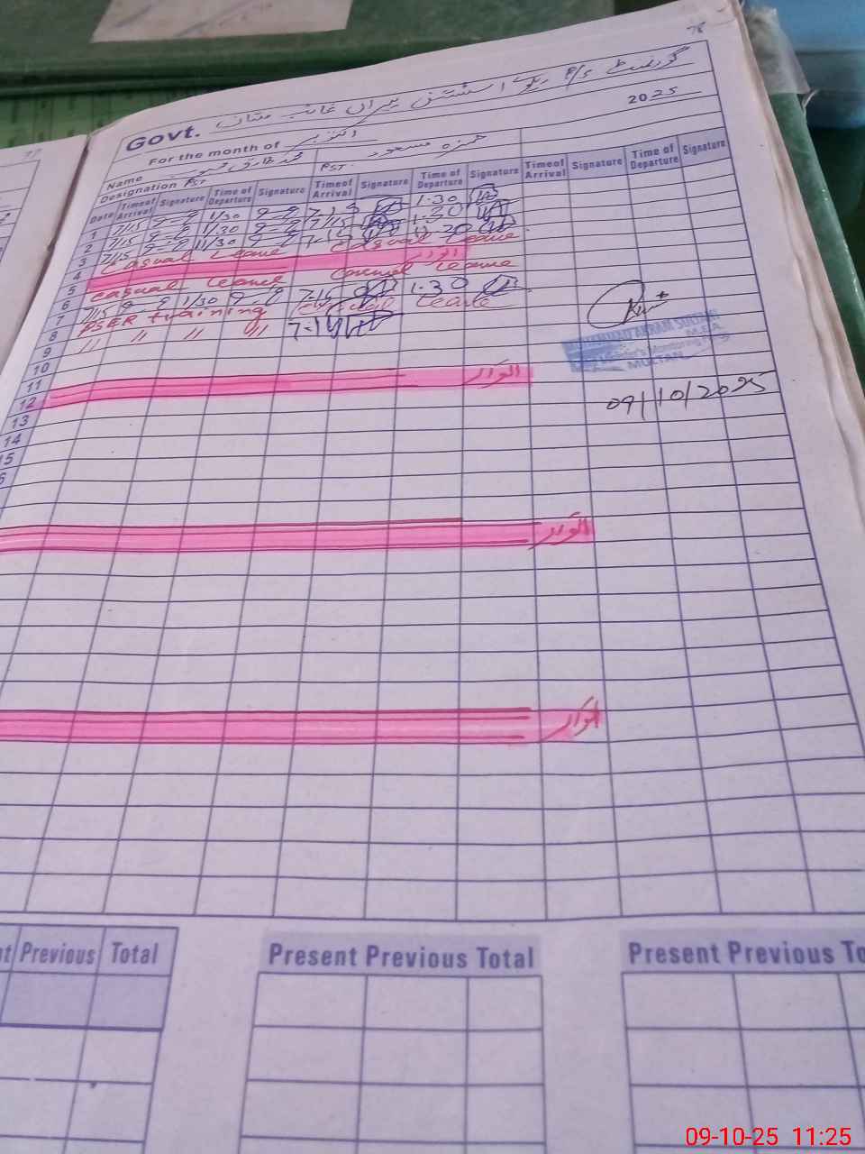 | CNIC | Full Name | Designation | R/C | Absence during last cal. month |