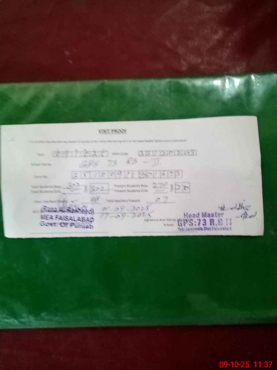 | EMIS Code: 33120203 | Name of School: GPS CHAK 73 RB II | |||