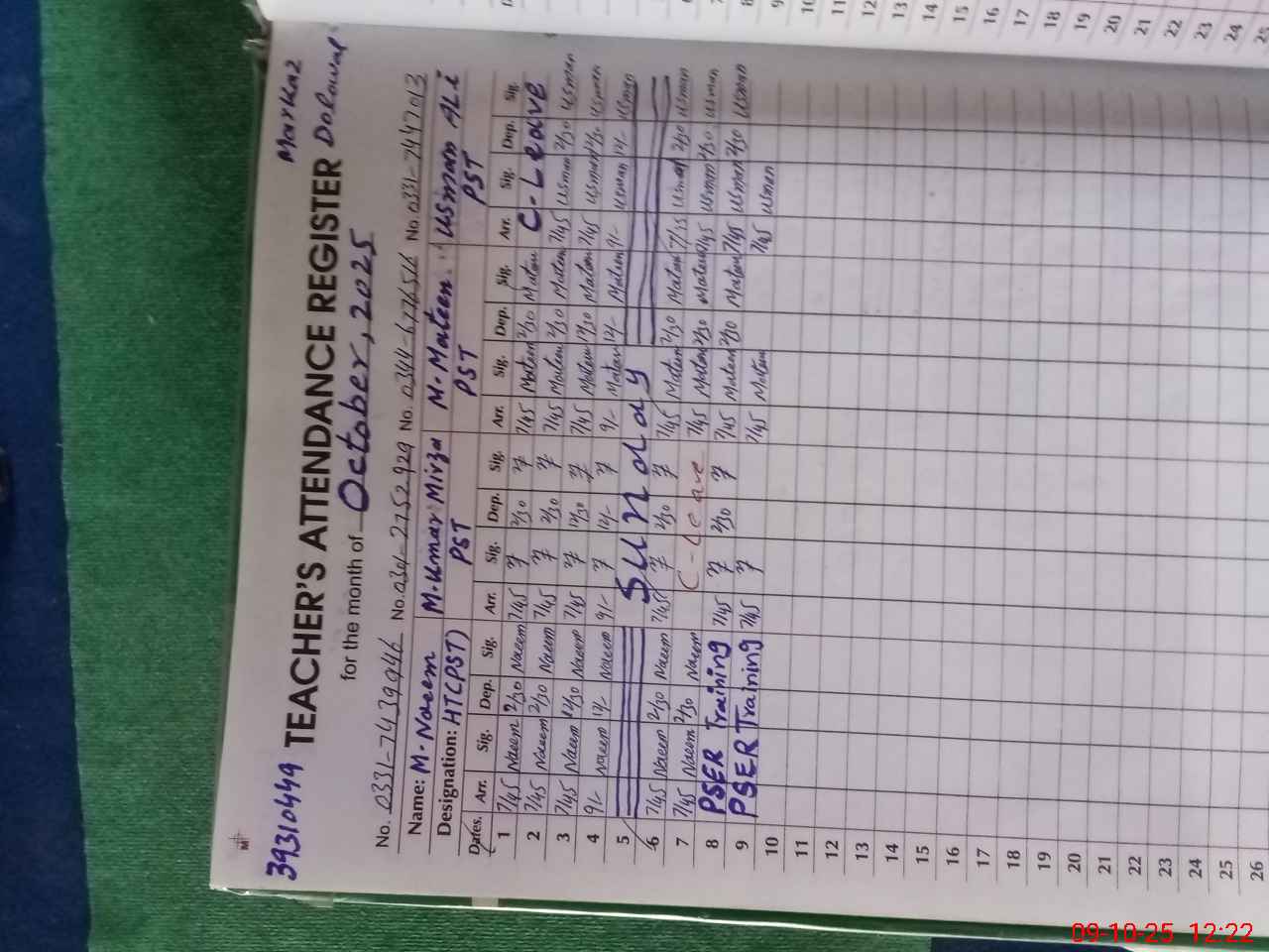 | CNIC | Full Name | Designation | R/C | Absence during last cal. month |