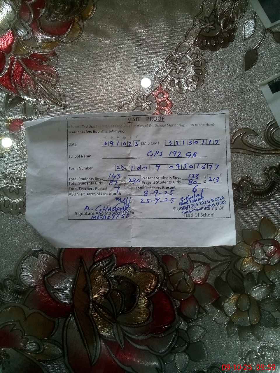 | EMIS Code: 33130117 | Name of School: GPS 192 GB OJLA | |||