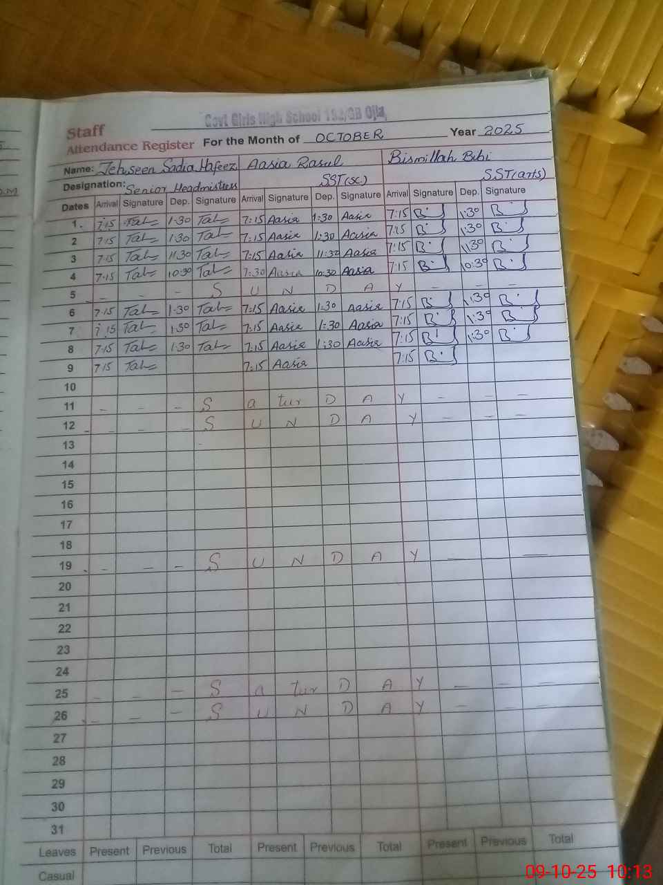 | CNIC | Full Name | Designation | R/C | Absence During Last Calender Month |