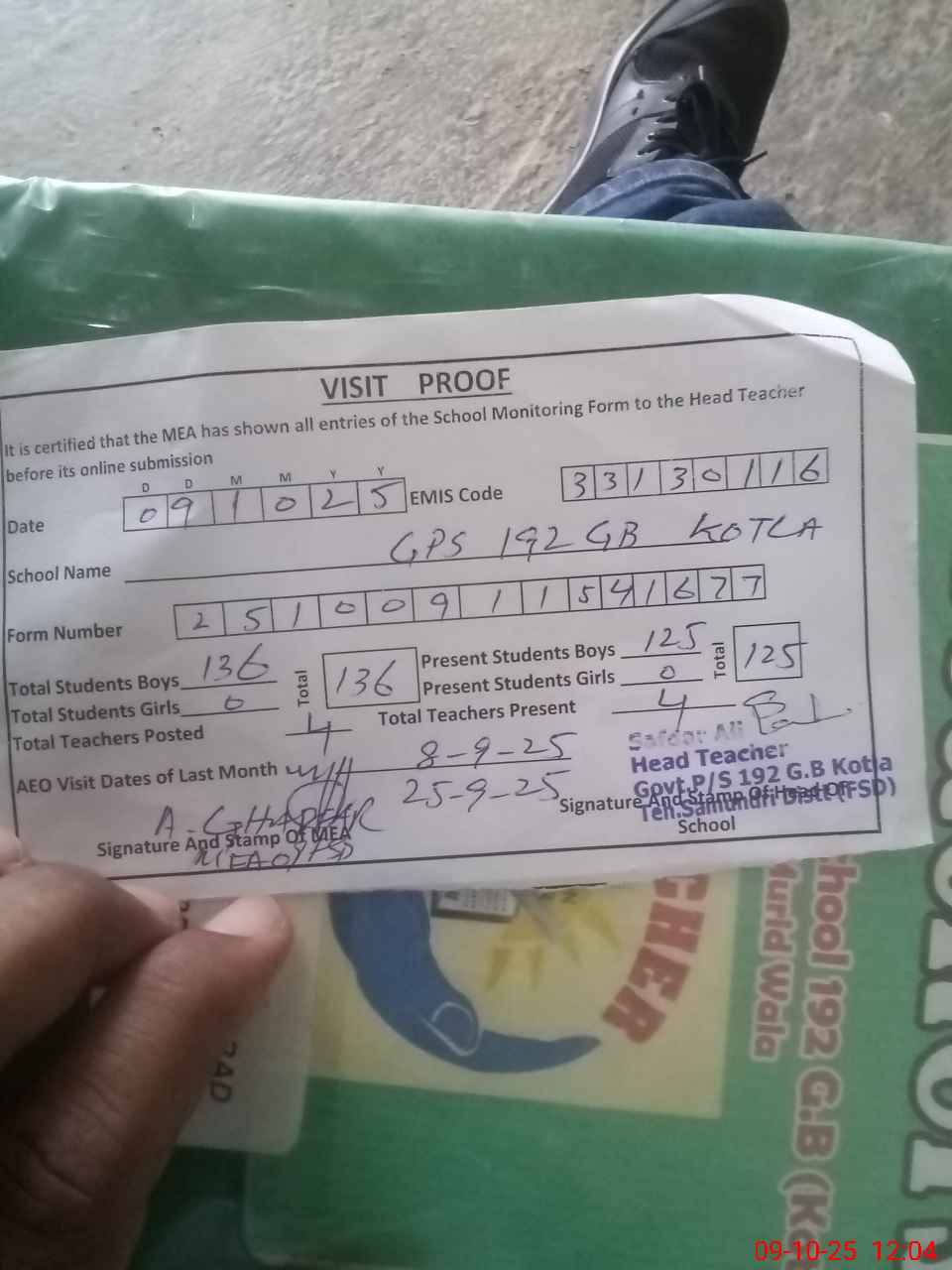 | EMIS Code: 33130116 | Name of School: GPS 192 GB KOTLA | |||
