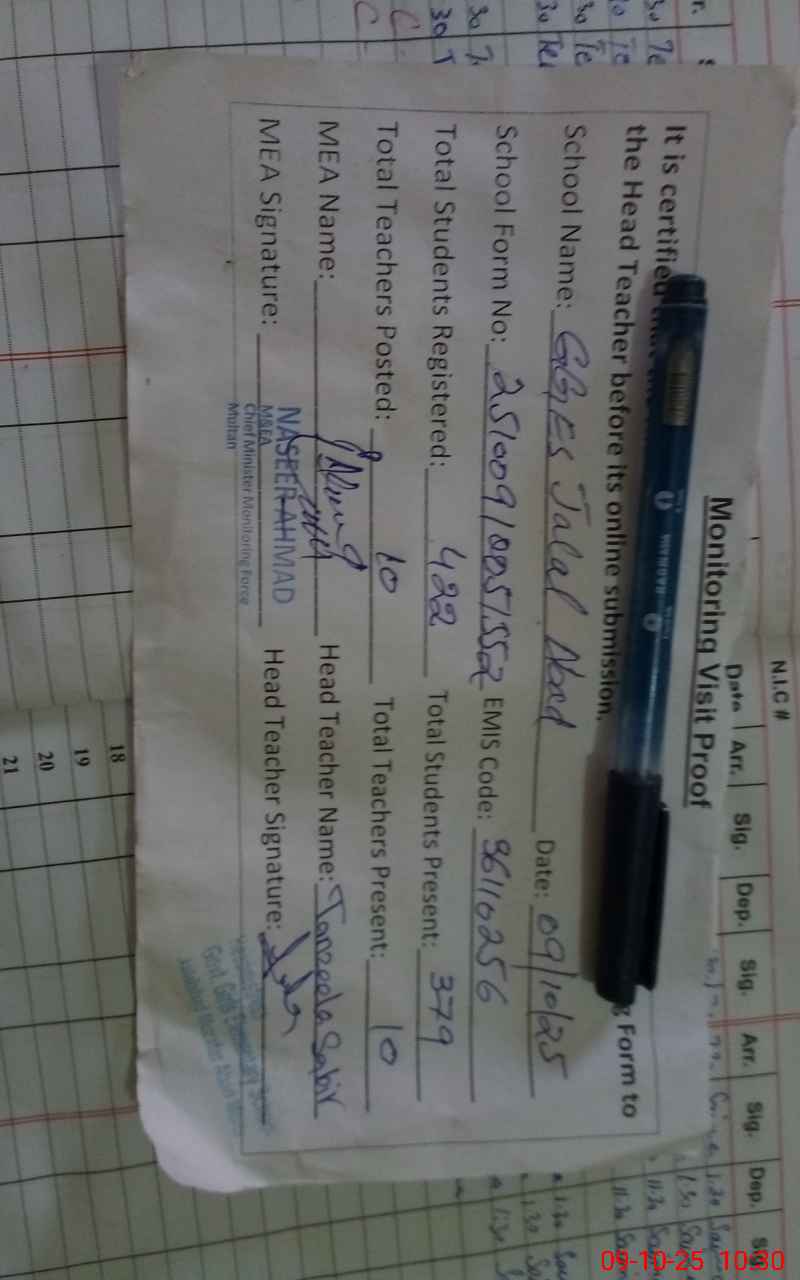 | EMIS Code: 36110256 | Name of School: GGES JALAL ABAD MUZAFFAR ABAD | |||