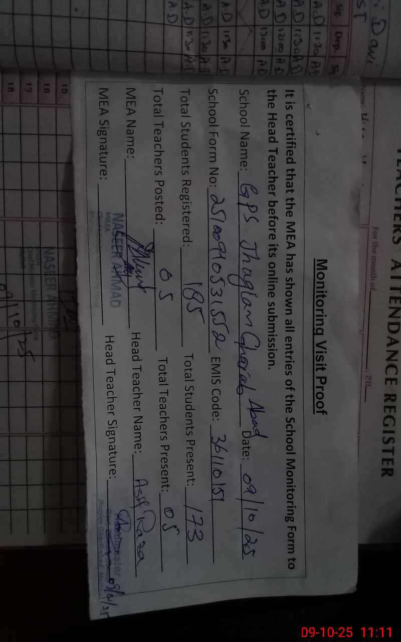 | EMIS Code: 36110151 | Name of School: GPS JHUGIAN GHAREEB ABAD MULTAN | |||