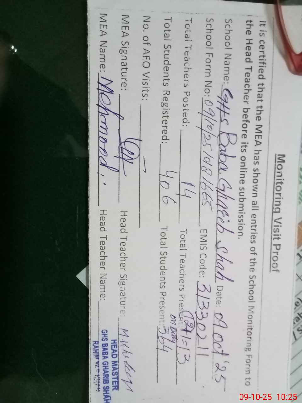 | EMIS Code: 31330211 | Name of School: GHS BABA GHARIB SHAH | |||