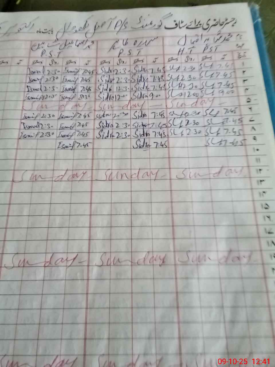 | CNIC | Full Name | Designation | R/C | Absence During Last Calender Month |