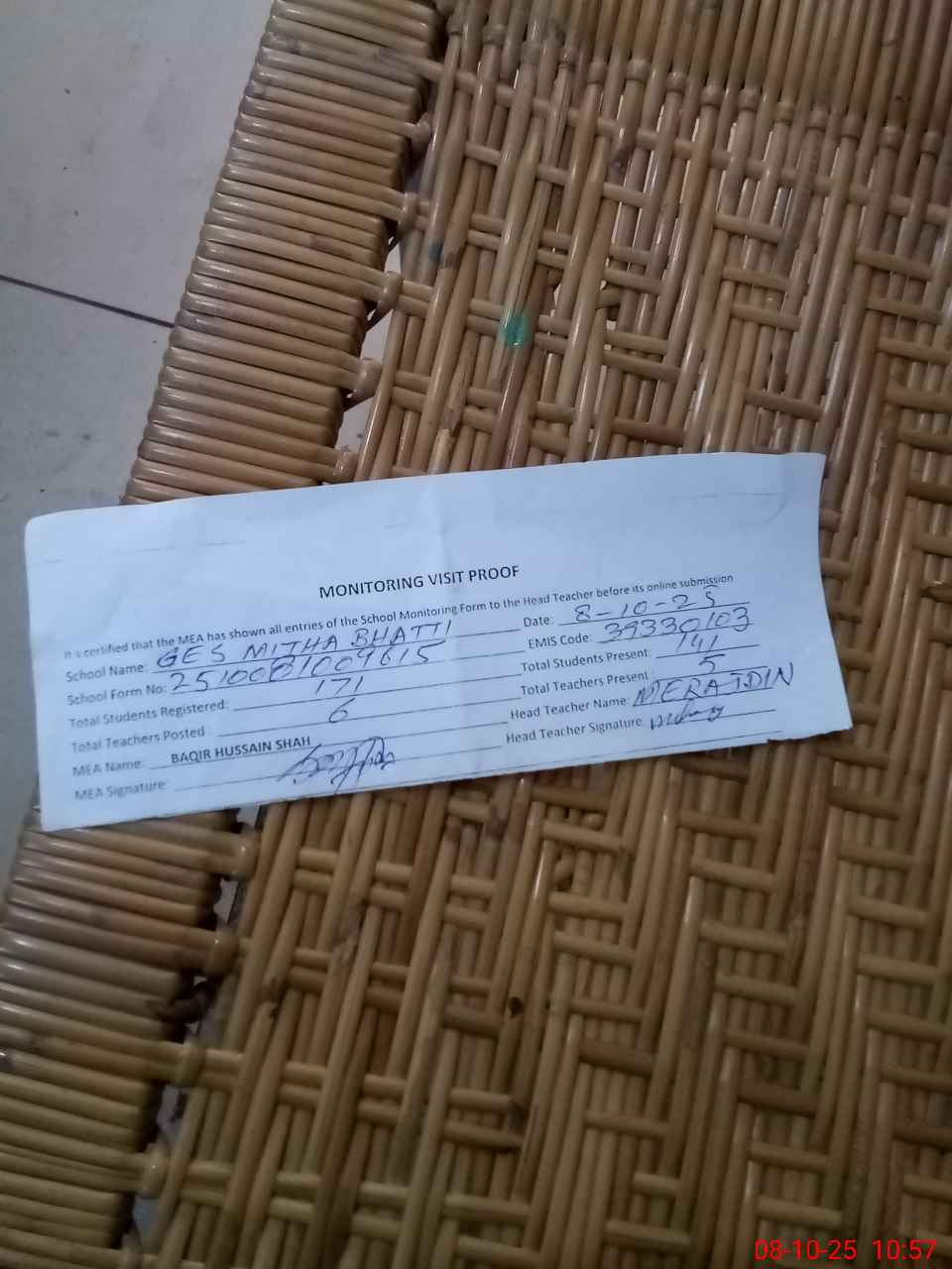 | EMIS Code: 39330103 | Name of School: GES MITHA BHATTI | |||