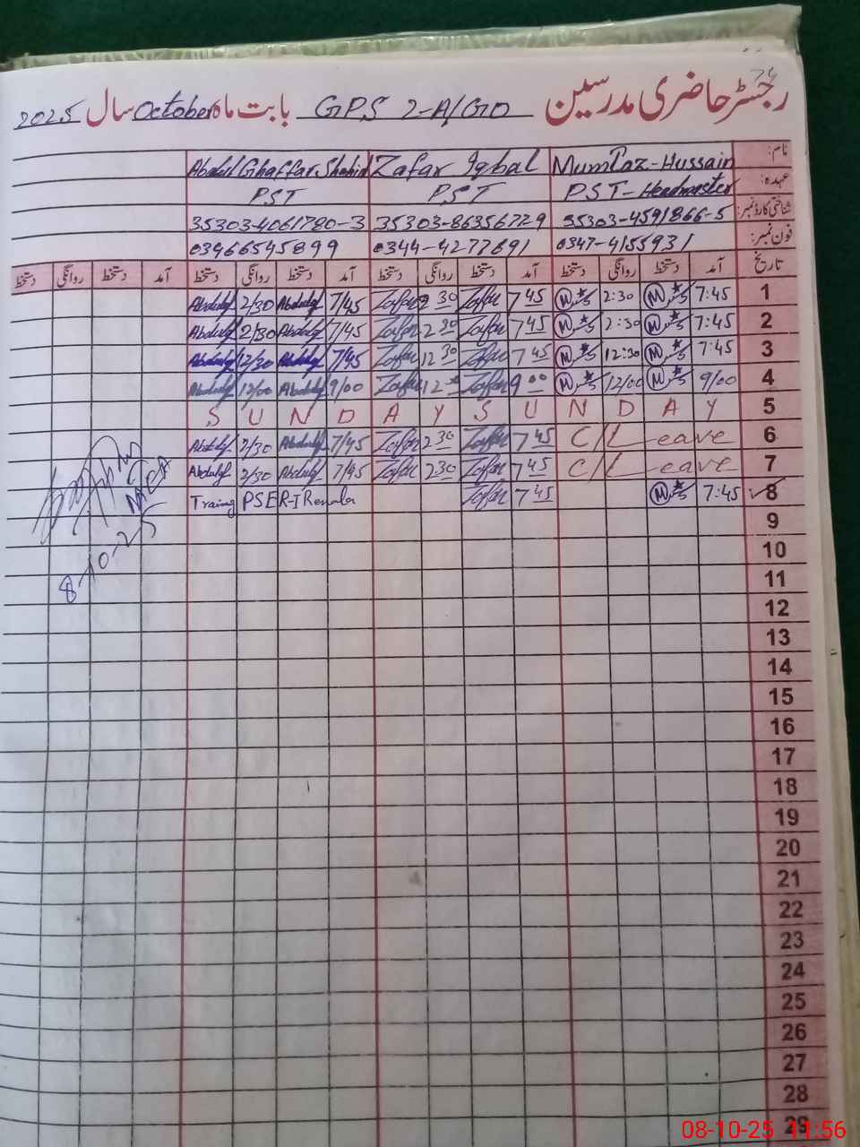 | Name: MU**** HU**** Designation: (School Headmaster's/Headmistress's) Headmaster Phone/Cell Number: 03**** |