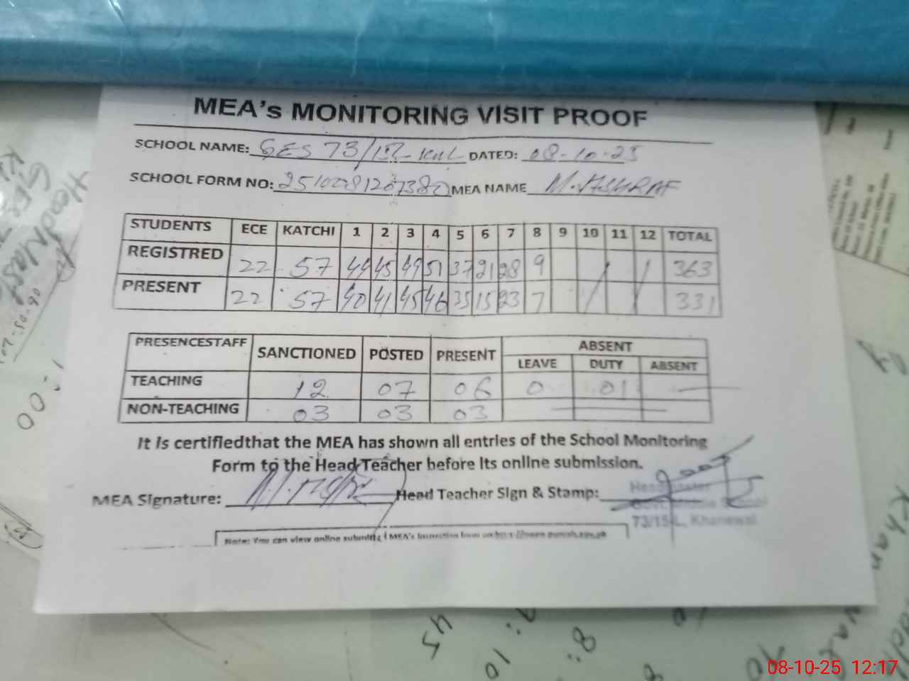 | EMIS Code: 36420653 | Name of School: GES 73/15-L KHANEWAL | |||