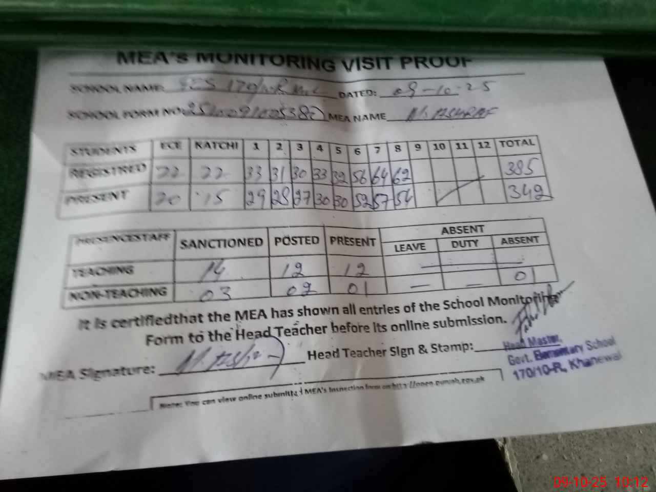 | EMIS Code: 36420069 | Name of School: GES 170/10-R, KHANEWAL | |||