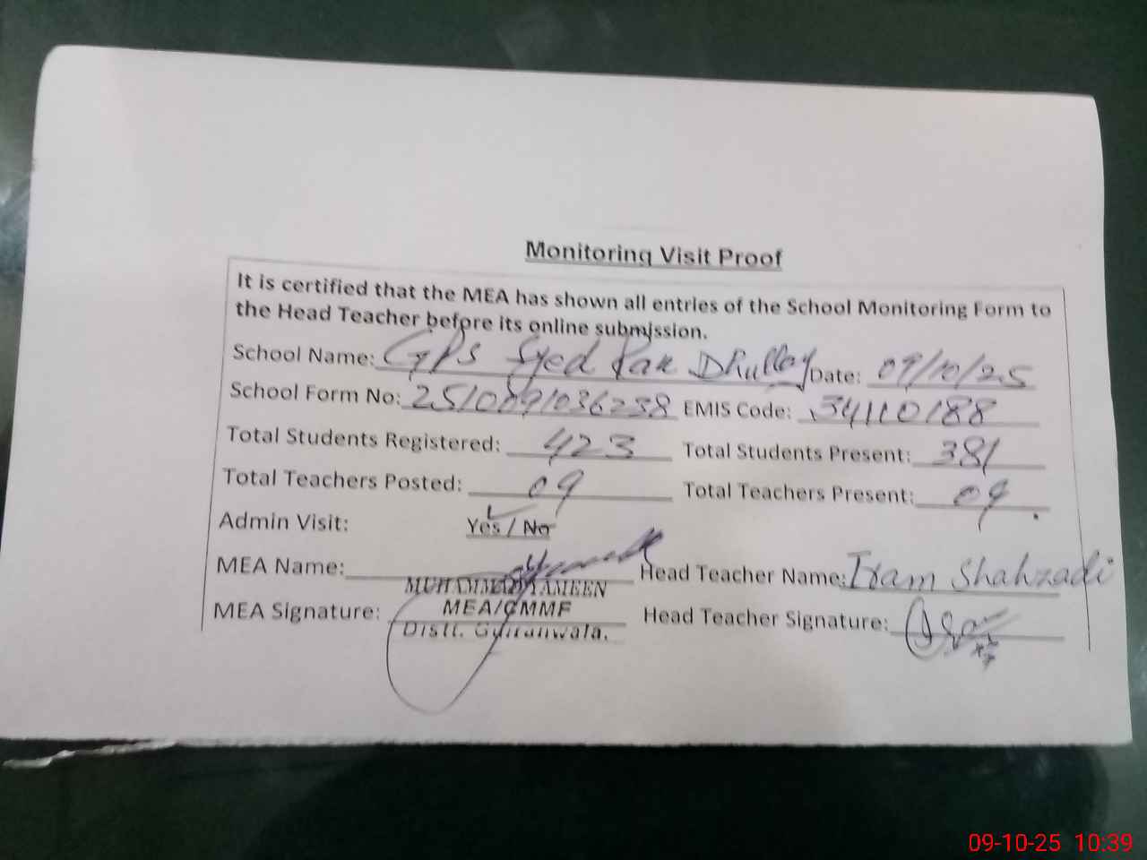 | EMIS Code: 34110188 | Name of School: GPS SYED PAK DHULLAY | |||