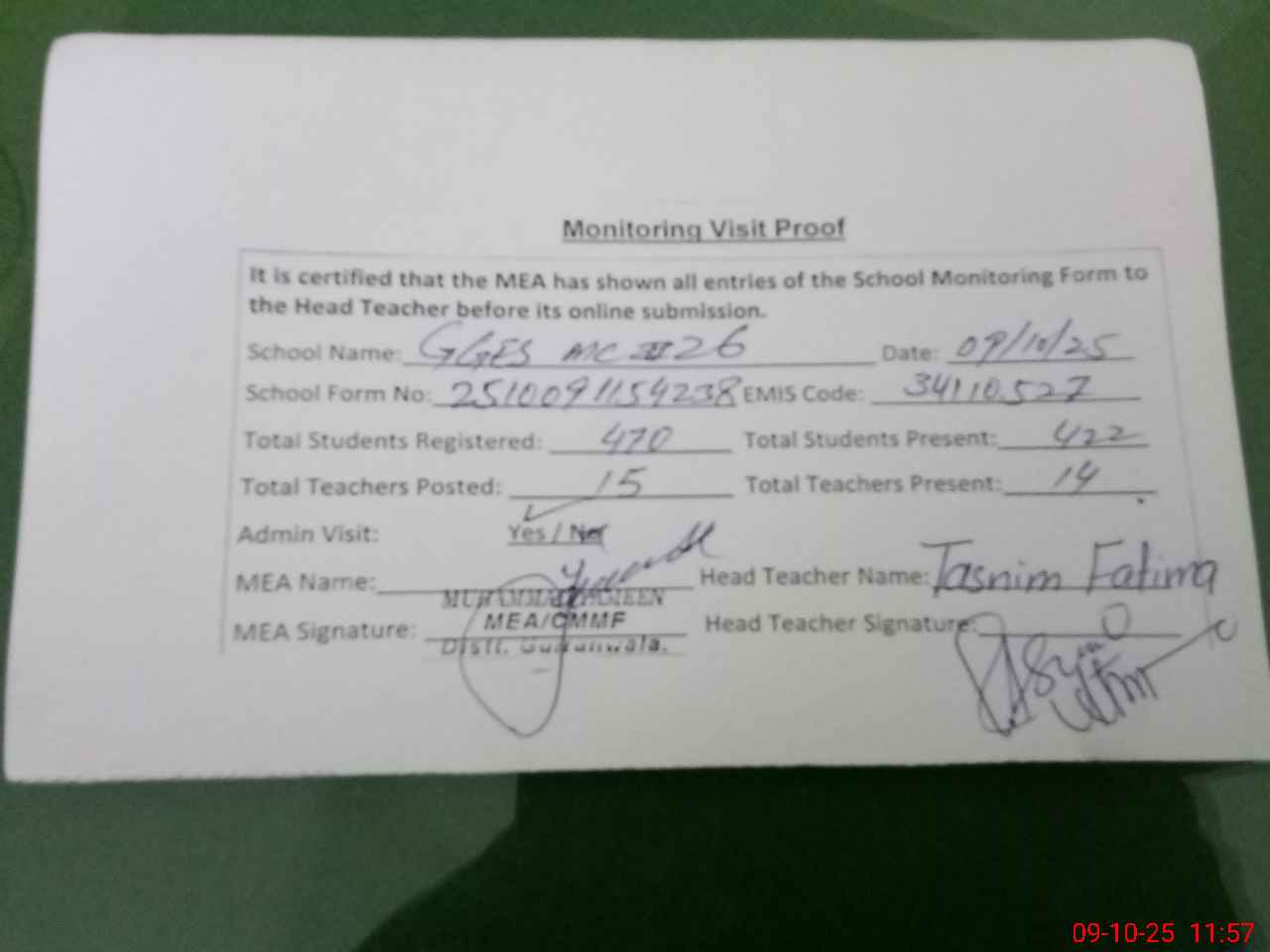 | EMIS Code: 34110527 | Name of School: GGES MC NO.26 GUJRANWALA | |||