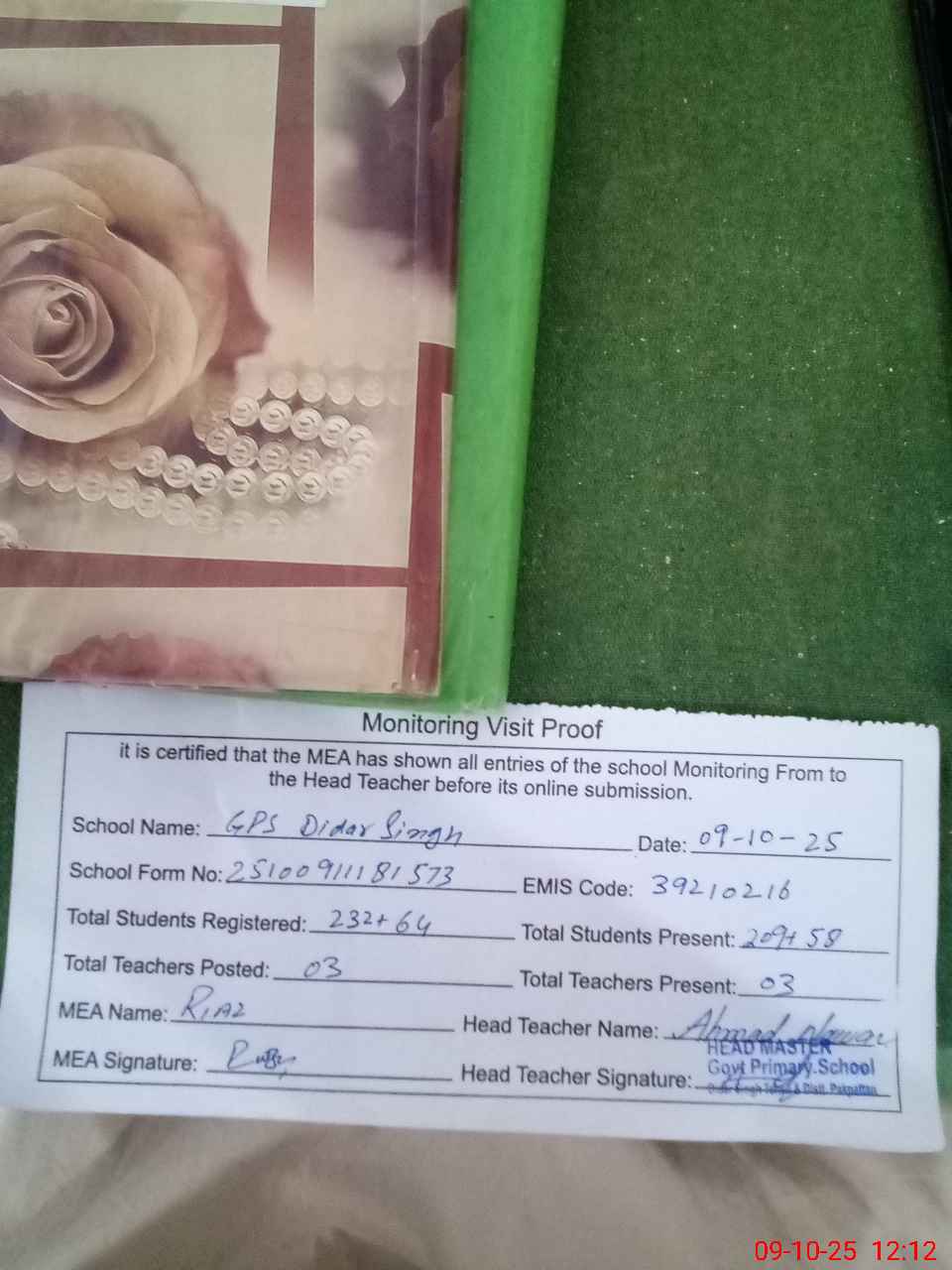 | EMIS Code: 39210216 | Name of School: GPS DIDAR SINGH | |||