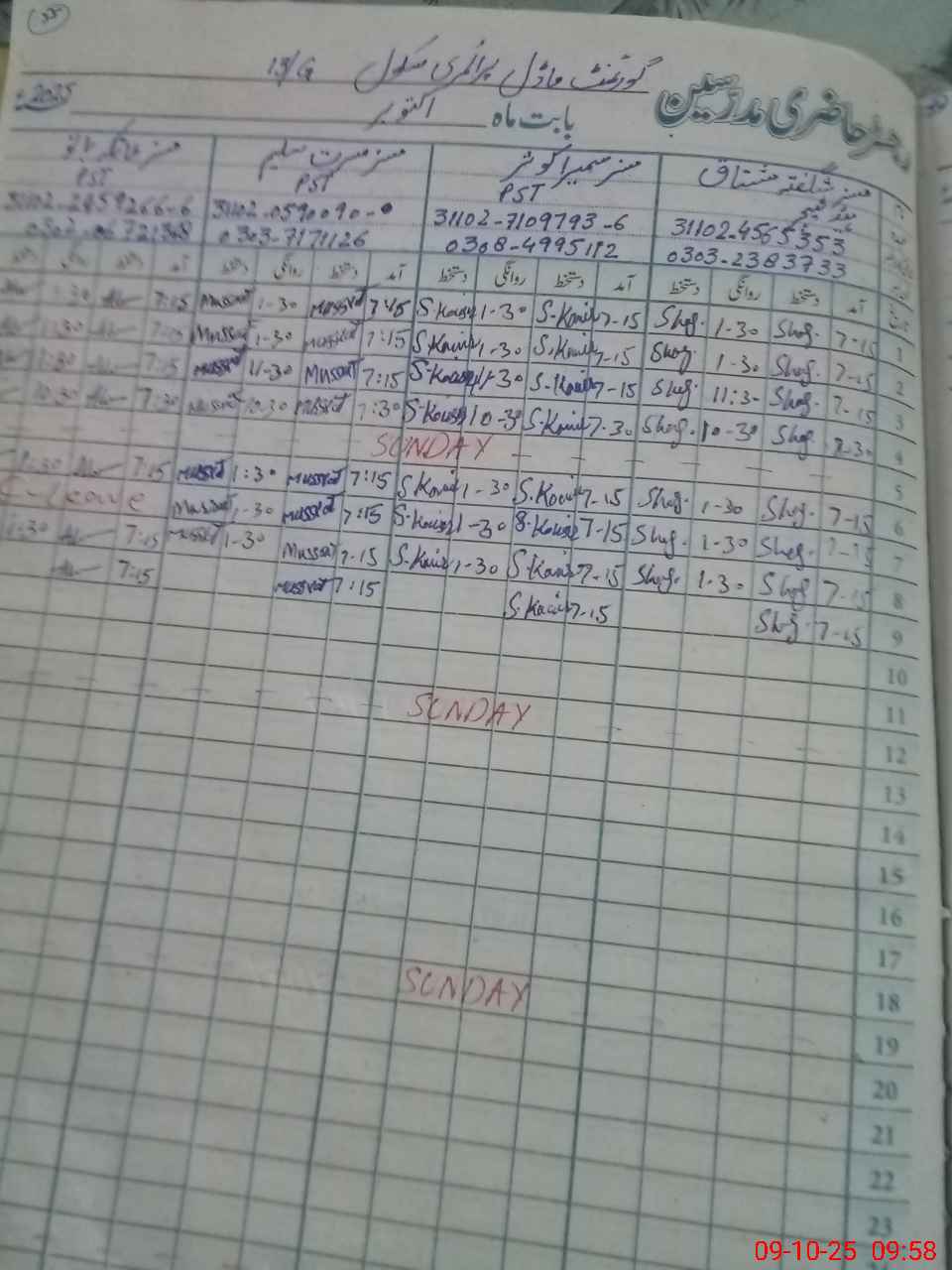 | Name: Sh**** Mu**** Designation: (School Headmaster's/Headmistress's) PST Phone/Cell Number: 03**** |