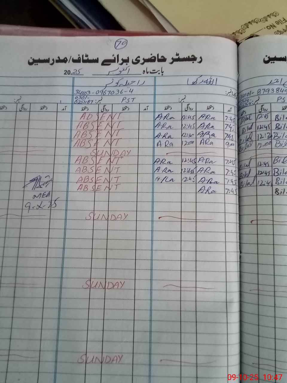 | CNIC | Full Name | Designation | R/C | Absence During Last Calender Month |