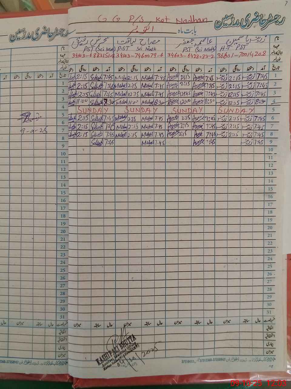 | Name: Za**** Ya**** Designation: (School Headmaster's/Headmistress's) PST Phone/Cell Number: 03**** |