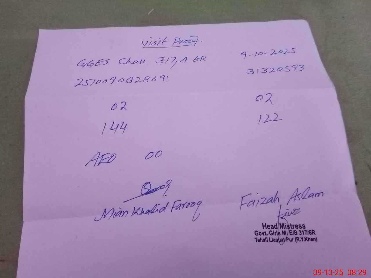 | EMIS Code: 31320593 | Name of School: GGES CHAK 317/A 6-R | |||
