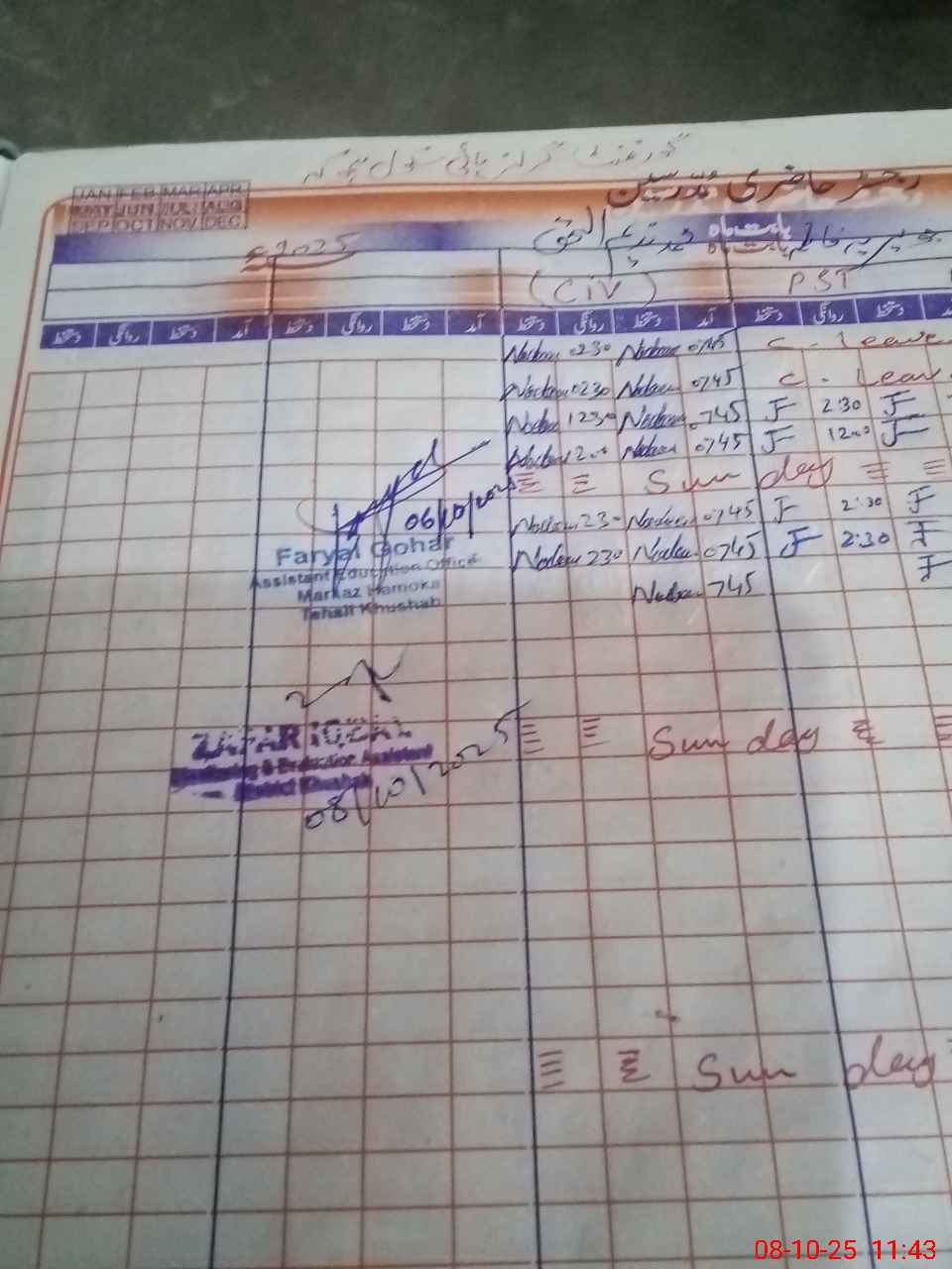 | CNIC | Full Name | Designation | R/C | Absence during last cal. month |