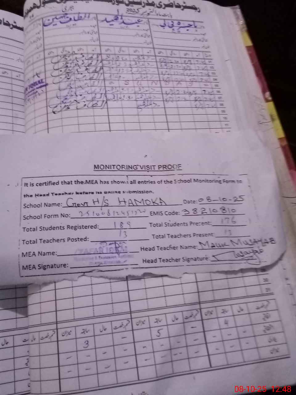 | Certified that this School was Inspected by the Undersigned MEA/DMO Today and the Information Stated Above is as Per Record. | |||||
