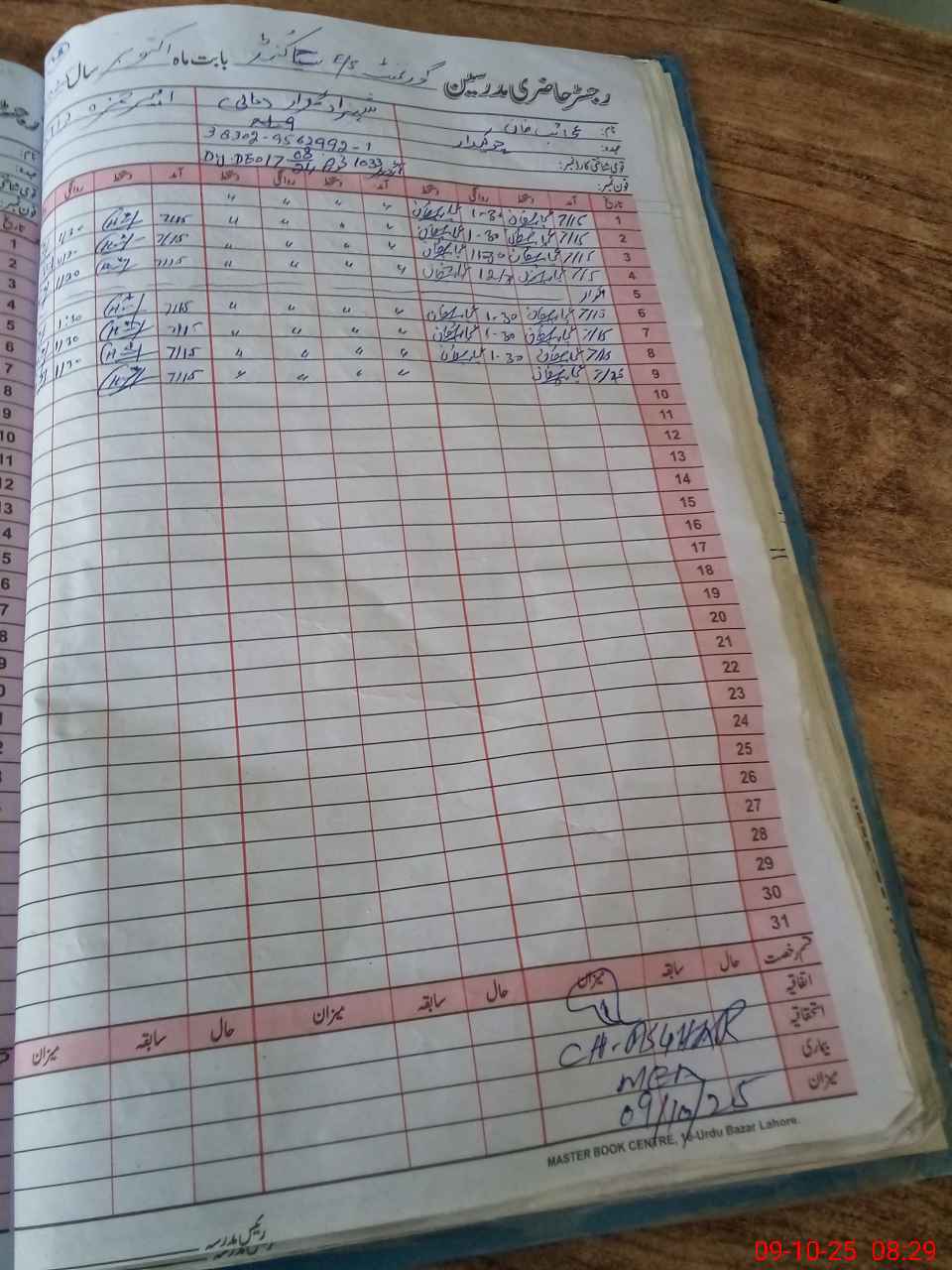 | CNIC | Full Name | Designation | R/C | Absence During Last Calender Month |