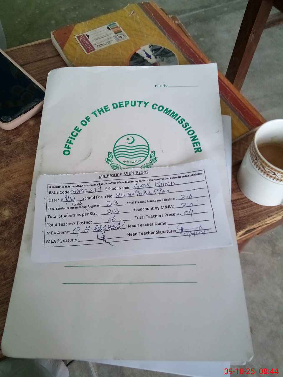 | Attendance Register | Head Teacher | MEA with School | Visit Proof |