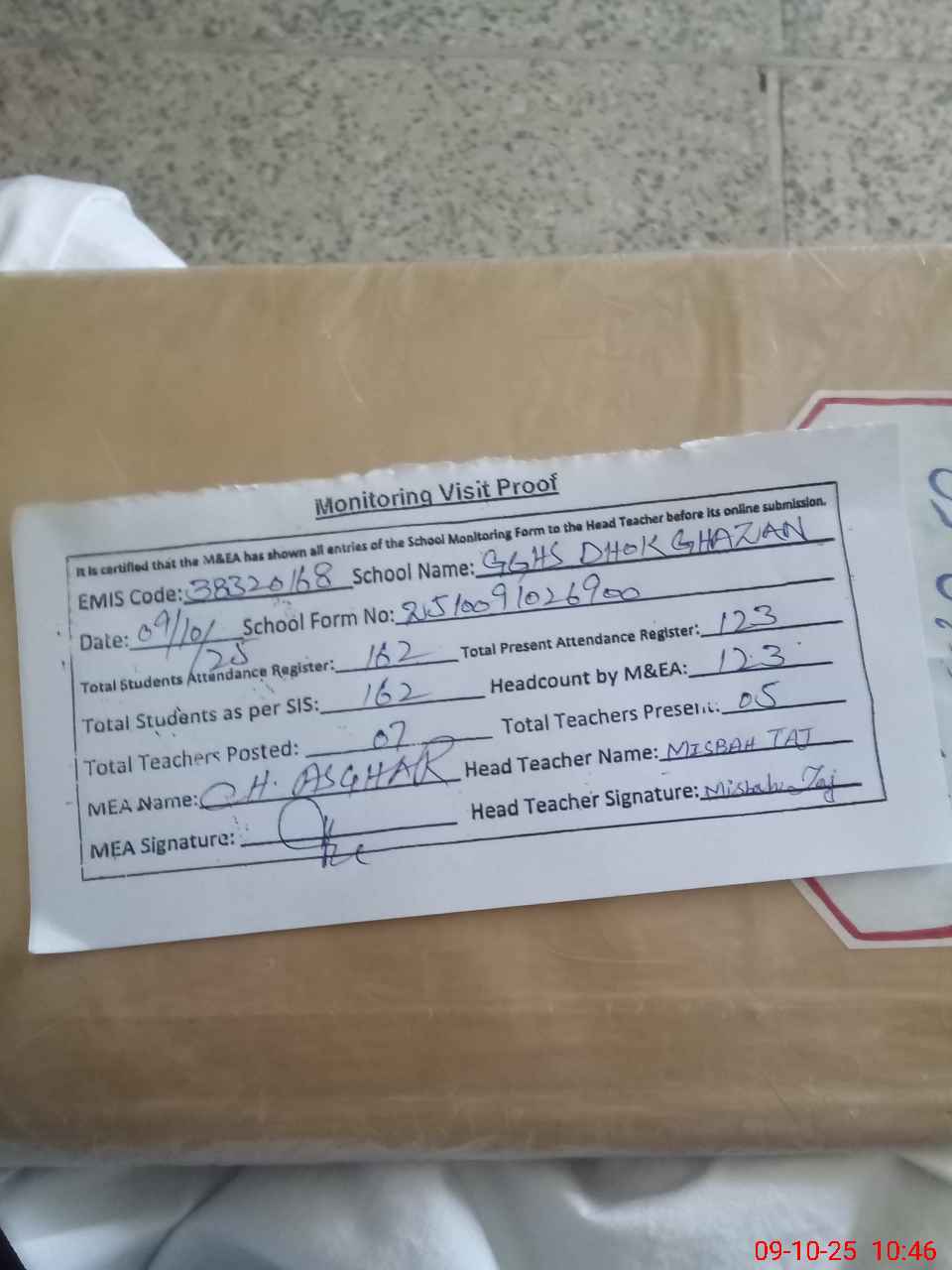 | EMIS Code: 38320168 | Name of School: GGHS DHOK GHAZAN CHAKRALA MIANWALI | |||